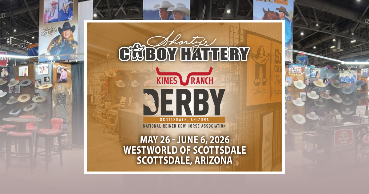 Find the Shorty’s Hattery Mobile Store at the NRCHA Derby, taking place May 26 through June 6, 2026 at the Westworld of Scottsdale in Scottsdale, Arizona. Be sure to stop by during this exciting event and get fitted with one of the very best cowboy hats.